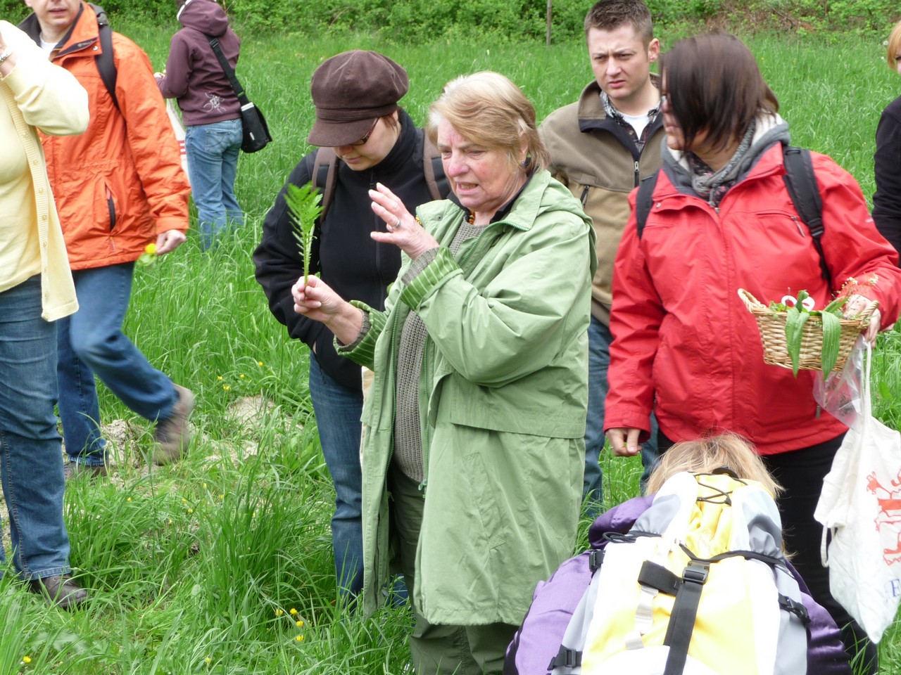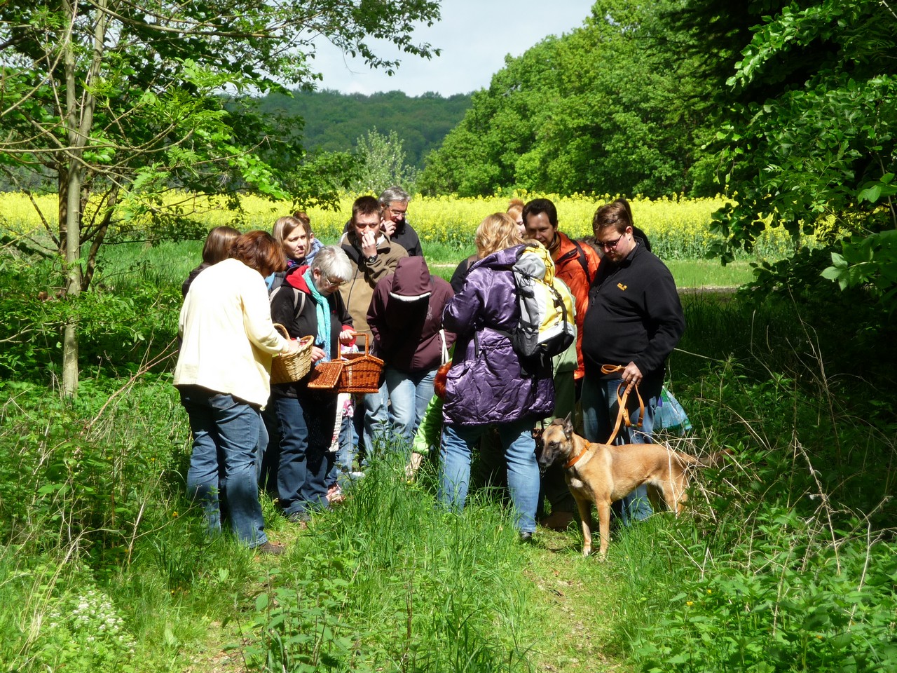 Am Muttertag lud der Verein "Die Cratzer e.V." zur Kräuterwanderung "Schmackhafte Frühlingswildkräuter" entlang der Wiesen und Felder am Rande von Hünstetten-Wallbach ein. Treffpunkt der 25 Muttertagsausflügler war der Grillplatz Wallbach. Unter der Führung der erfahrenen Kräuterkundlerin Anne Stöhr-Nickel ging die Tour über die Wege entlang der angrenzenden Wiesen, finden sich doch viele Kräuter bereits direkt am Wegesrand. Schnell wurden Küchen- und Heilkräuter wie die Schafgarbe und der Spitzwegerich, früher als Salat verwendete Pflanzen wie der allseits bekannte Löwenzahn (kleine Blätter haben weniger Bitterstoffe!) oder auch Kräuter mit anderer Verwendung wie der früher als "Pflaster" verwendete Breitwegerich gesichtet und eingesammelt. Und selbst oft als "Unkraut" bezeichnete Pflanzen wie der alles zuwuchernde Giersch oder die ungeliebte Brennnessel haben ihren Wert für Gesundheit und Geschmack, so daß sich die Körbe schnell füllten.
